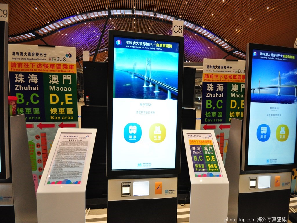 マカオヘのバス乗り場は、写真では見づらいですが「To Lantau Island」の中にあるB4です。バス停は、右側の短い横断歩道を渡って、奥に進んだところにありました。まず、「大橋香港口岸」に行ってマカオへの入国審査を済ませます。