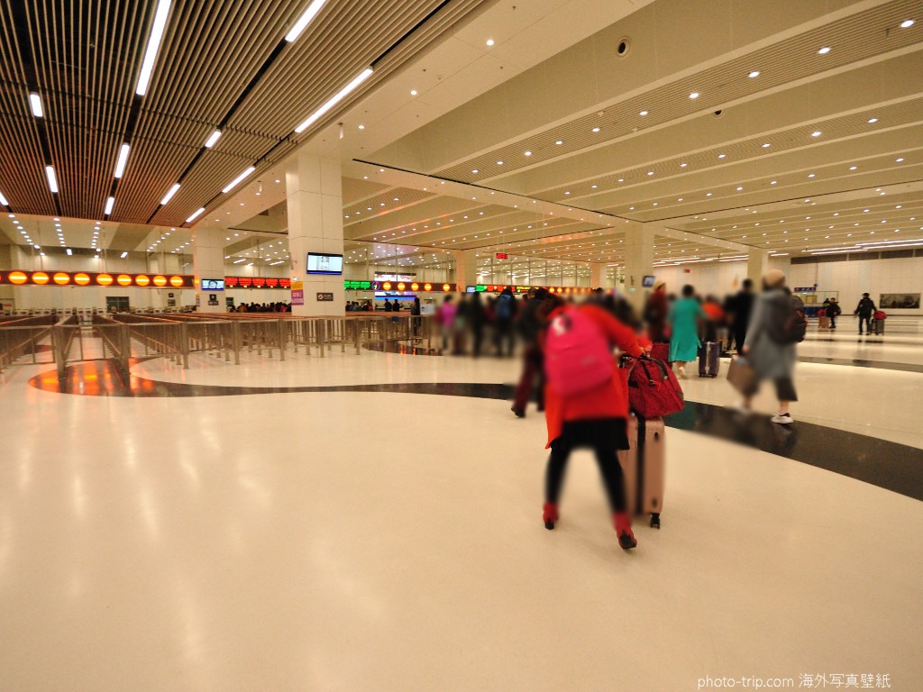 香港の出国ゲートを通過した先の写真です。10分ほどで香港の出国ゲートのある大きなターミナルに到着しました。出国手続きは無人の自動ゲートで行いますが、有人のゲートもあるようでした。パスポートの顔写真のあるページを開いて下向きにして機械に差し入れて読み取りをさせ、成功すればゲートが開き、その先のゲートで顔の認証をすると完了です。わからなければ他の人が手続きしているのを見てマネしましょう 笑