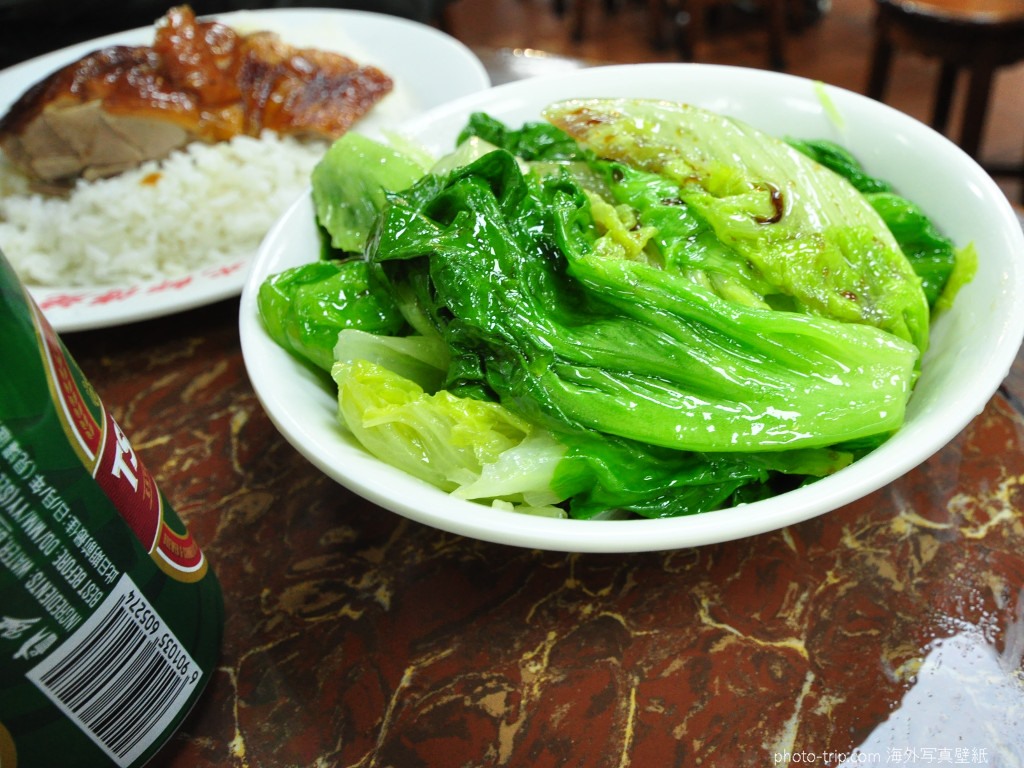 油生菜です。ゆでた野菜を薄い醤油で味付けしたような味です。特別美味しいというものではありませんでしたが、 柔らかく、食べやすく、日本人が家庭で食べる野菜と近い風味でした。以上の3品を、二人で半分ずつ食べて満腹になりました。